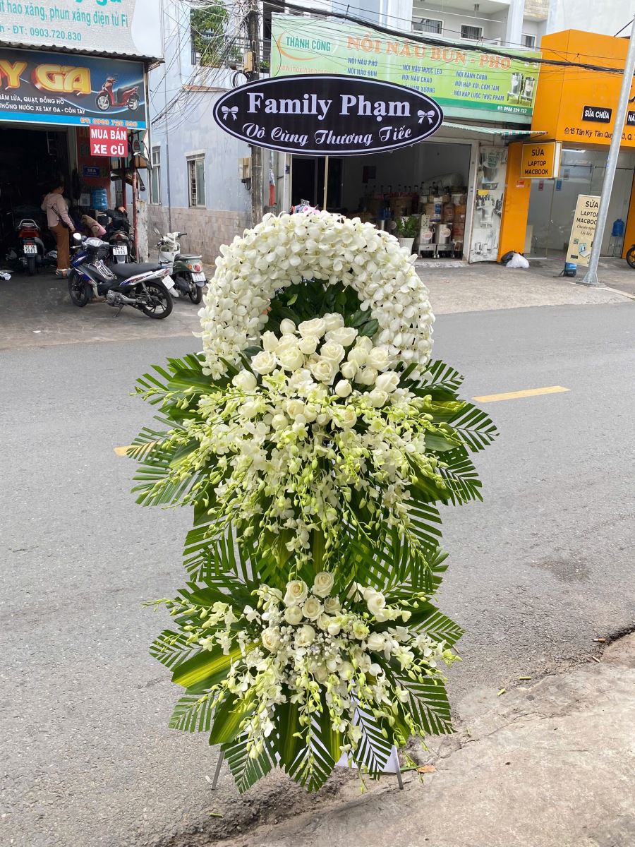 Trong những thời khắc tiễn đưa người thân, một kệ hoa tang lễ không chỉ thể hiện sự kính trọng mà còn là lời chia buồn sâu sắc gửi đến gia quyến. Những vòng hoa trắng trang nhã mang thông điệp tiễn biệt, thể hiện tình cảm và sự tưởng nhớ đối với người đã khuất.